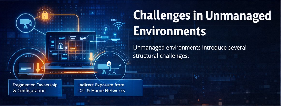 Unmanaged environments introduce several structural challenges: